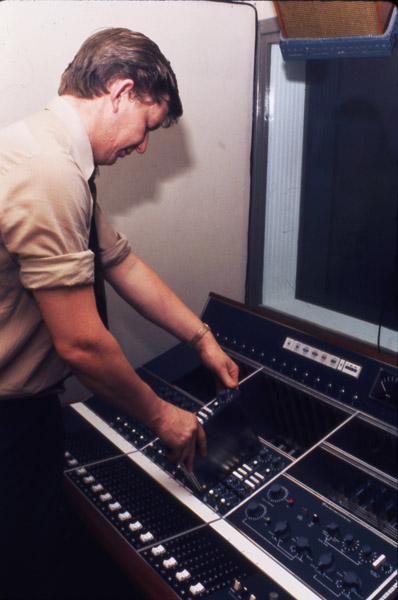A later picture of the Neve in use, after it had been expanded to 16 channels (note that the EQ modules in the first 4 channels are different)