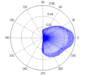 The final output option currently available is a plot of the predicted position (based on the interaural time difference) and the width as a radar plot. There are a number of options in how this can be created, including separating or combining results across time and frequency. This type of output will be more powerful once separate sources and reverberation can be identified and flagged as such, and once the results can be extended to the full 360 degree circle by including head movement in the binaural capture technique. Research is underway within the Institute of Sound Recording to enable this.